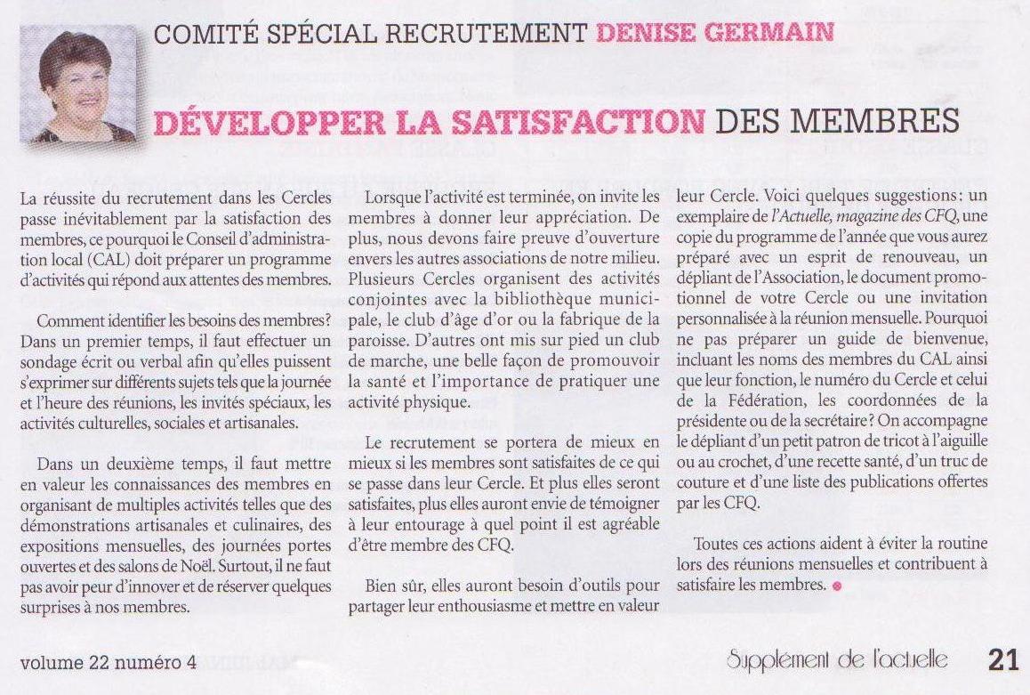 Voici l'article de magazine de Cercle de Fermières du Québec "L'actuelle"